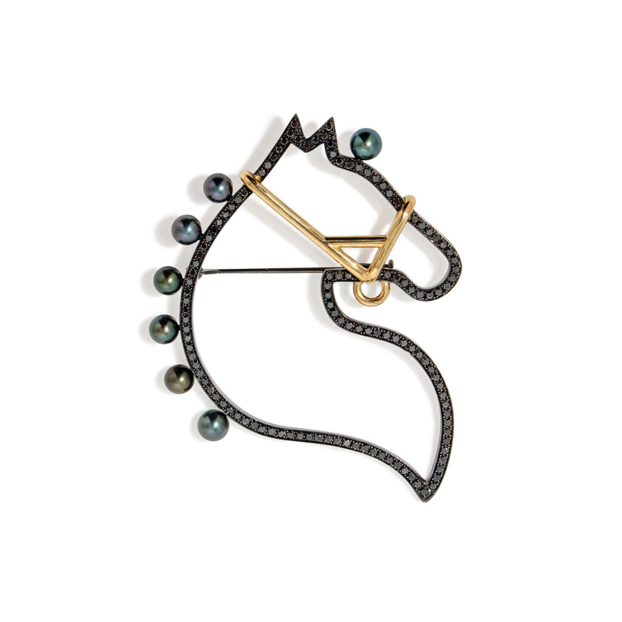 【Cheval】シュヴァルブローチ(M) あこや黒真珠 4.5-5.0mm Silver(marlena-cheval-br)