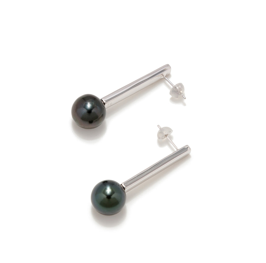 【Rectangle】レクタングルピアス タヒチ黒蝶真珠 10mmUP Silver/K18WG(marlena-53-6065)